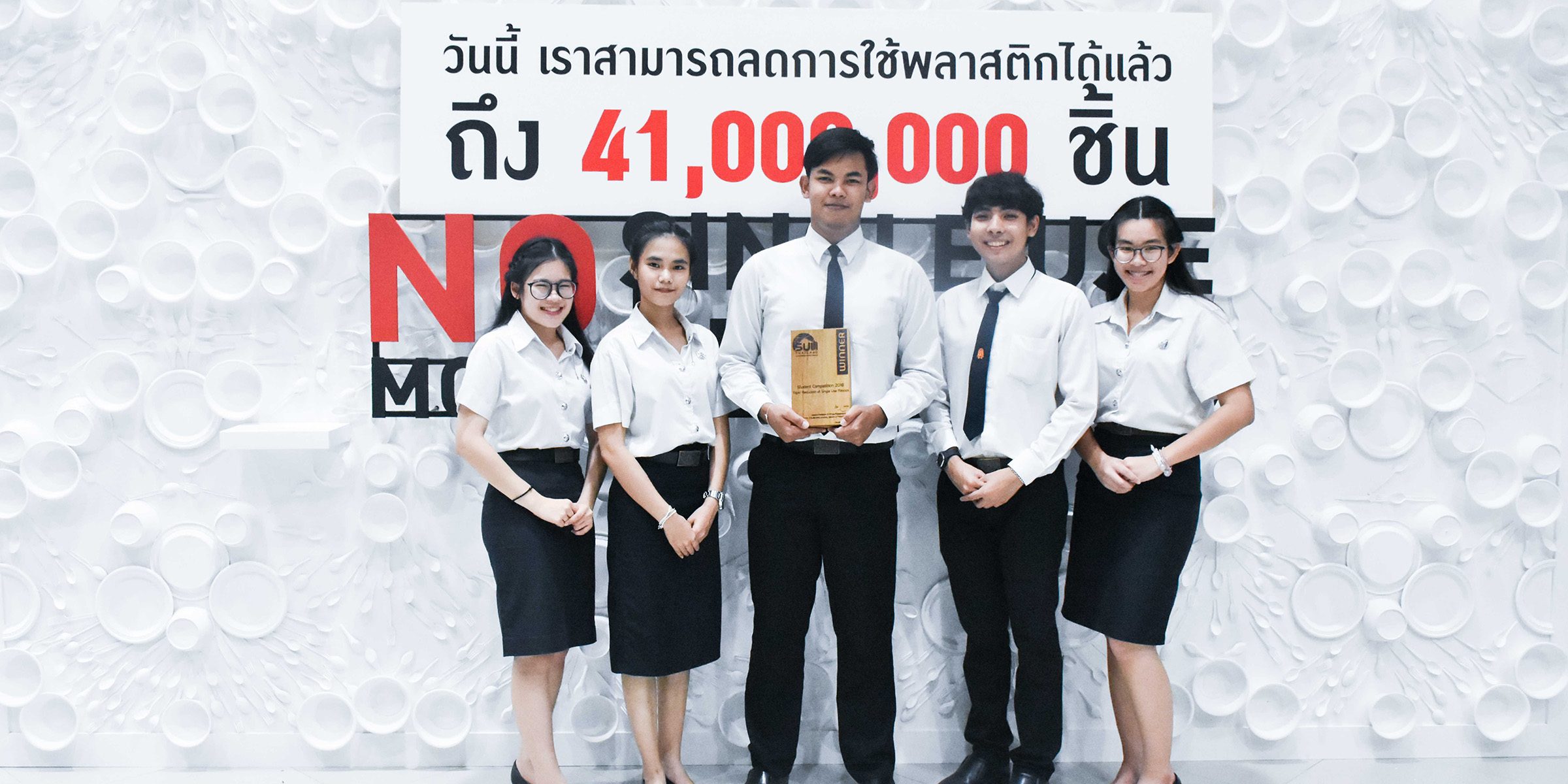 กลุ่มนักศึกษา Green Heart มหาวิทยาลัยเทคโนโลยีพระจอมเกล้าธนบุรี (มจธ.) นำเสนอโครงงาน KMUTT Say No to single use plastic คว้ารางวัลชนะเลิศอันดับ 1 โครงงานความยั่งยืนของนิสิตนักศึกษา ภายใต้หัวข้อ “การลดปริมาณขยะพลาสติกแบบครั้งเดียวทิ้งในมหาวิทยาลัย” โดยมี ผศ.ดร.ปริญญา เทวานฤมิตรกุล ประธานเครือข่ายมหาวิทยาลัยยั่งยืนแห่งประเทศไทย เป็นประธานมอบรางวัลในงานประชุมเครือข่ายมหาวิทยาลัยยั่งยืนแห่งประเทศไทย ประจำปี 2561 ในหัวข้อ “ปฏิบัติการความยั่งยืน 2561: Action for the Goals” เมื่อวันที่ 25 ตุลาคม 2561 ณ มหาวิทยาลัยธรรมศาสตร์ ศูนย์รังสิต