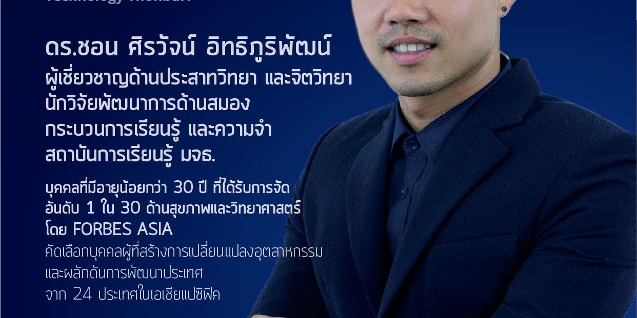 ดร.ชอน ศิรวัจน์ อิทธิภูริพัฒน์ ผู้เชี่ยวชาญด้านประสาทวิทยา และจิตวิทยา นักวิจัยพัฒนาการด้านสมอง กระบวนการเรียนรู้ และความจำ สถาบันการเรียนรู้ มจธ. ได้รับการจัดอันดับเป็น 1 ใน 30 ด้านสุขภาพและวิทยาศาสตร์โดย Forbes Asia โดยเป็นบุคคลที่มีอายุน้อยกว่า 30 ปีที่สร้างการเปลี่ยนเเปลงอุตสาหกรรมและผลักดันการพัฒนาประเทศ จาก 24 ประเทศในเอเชียแปซิฟิก