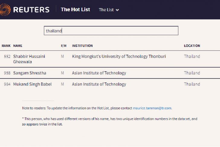 เมื่อวันที่ 20 เมษายน 2564 สำนักข่าวรอยเตอร์ (Reuters) ได้จัดอันดับ 1,000 นักวิจัยทางด้านการเปลี่ยนแปลงสภาพภูมิอากาศของโลก หรือ The Reuters Hot List 2021 ซึ่งผลการจัดอันดับในปีนี้ Prof. Dr. Shabbir H. Gheewala (ศ. ดร.แชบเบียร์ กีวาลา) หัวหน้าศูนย์วิจัยการประเมินวัฏจักรชีวิตเพื่อการพัฒนาที่ยั่งยืน บัณฑิตวิทยาลัยร่วมด้านพลังงานและสิ่งแวดล้อม มหาวิทยาลัยเทคโนโลยีพระจอมเกล้าธนบุรี (มจธ.) ได้รับการจัดอันดับที่ 552 ของโลก และเป็นอันดับ 1 ของประเทศไทย ทั้งนี้การจัดอันดับถูกพิจารณาจาก 3 ด้านหลัก คือ จำนวนผลงานวิจัยที่เกี่ยวข้องกับการเปลี่ยนแปลงสภาพภูมิอากาศที่ได้รับการเผยแพร่ จำนวนครั้งของการที่งานวิจัยเหล่านั้นถูกอ้างอิงถึงในสาขาวิชาที่เกี่ยวเนื่องกัน เช่น ชีววิทยา เคมี หรือ ฟิสิกส์ เป็นต้น และจำนวนครั้งของการอ้างอิงผลงานวิจัยเหล่านั้นในสื่ออื่นๆ เช่น สิ่งพิมพ์ โซเชียลมีเดีย และเอกสารเชิงนโยบายต่างๆ ทั้งนี้การประเมินผลกระทบของผลงานวิจัยเป็นข้อมูลที่จัดทำขึ้นโดยบริษัท Digital Science…