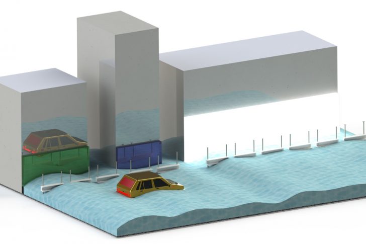 ทีมนักศึกษาคณะวิศวกรรมศาสตร์ มหาวิทยาลัยเทคโนโลยีพระจอมเกล้าธนบุรี (มจธ.) นำหลักการของ กำแพงกันคลื่น อุปกรณ์ติดตั้งริมทะเลเพื่อลดพลังงานของคลื่นที่พัดเข้ามากัดเซาะชายฝั่ง มาพัฒนาเป็น “กำแพงกันคลื่นแบบลอยตัว” ที่สามารถใช้ลดแรงของคลื่นน้ำ ที่เกิดจากการวิ่งของยานยนต์บนถนนที่ถูกน้ำท่วมได้ถึง 42.7 เปอร์เซ็นต์ รวมถึงจุดเด่นที่เหนือกว่าการกันคลื่นด้วยแผงกั้นแบริเออร์หลายประการ
