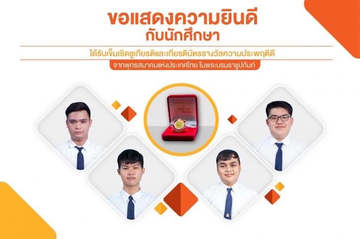 พุทธสมาคมแห่งประเทศไทย ในพระบรมราชูปถัมภ์ มอบเข็มเชิดชูเกียรติและเกียรติบัตรรางวัลความประพฤติดีแก่นักเรียน นิสิต นักศึกษาทั่วประเทศ ประจำปี 2563 ในเทศกาลวันวิสาขบูชาวันสำคัญของโลก ในปีนี้มีนักศึกษามหาวิทยาลัยเทคโนโลยีพระจอมเกล้าธนบุรี (มจธ.) ได้รับรางวัล 4 คน