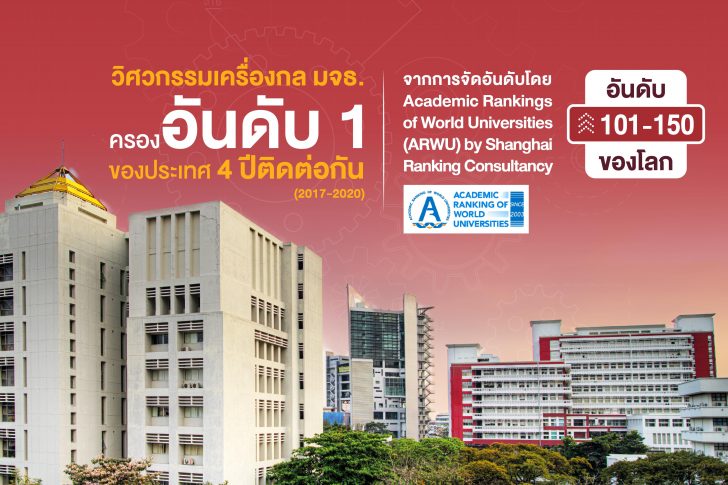 วิศวกรรมเครื่องกล มจธ. ครองอันดับ 1 ของประเทศ 4 ปีติดต่อกัน (ในปี 2017-2020) ปี 2020 อันดับโลกขยับสูงขึ้น อยู่ในอันดับ 101-150 ของโลก และอันดับ 3 ของมหาวิทยาลัยอาเซียน ในสาขาวิชาวิศวกรรมเครื่องกล จากการจัดอันดับโดย Academic Rankings of World Universities (ARWU) by Shanghai Ranking Consultancy