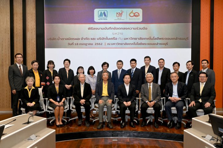 มหาวิทยาลัยเทคโนโลยีพระจอมเกล้าธนบุรี (มจธ.) โดย รศ.ดร.สุวิทย์ แซ่เตีย อธิการบดี และดร.กัญญวิมว์ กีรติกร รองอธิการบดีอาวุโสฝ่ายวิจัยและนวัตกรรม และบริษัท น้ำตาลมิตรผล จำกัด และบริษัทในเครือ โดย นายวีระเจตน์ ว่องกุศลกิจ ประธานเจ้าหน้าที่บริหาร กลุ่มธุรกิจน้ำตาลประเทศไทย พลังงานและธุรกิจใหม่ กลุ่มมิตรผล และนายศรายุธ แสงจันทร์ รองกรรมการผู้จัดการใหญ่ กลุ่มการเงินและรักษาการประธานเจ้าหน้าที่ปฏิบัติการ กลุ่มบริหาร ได้ลงนามบันทึกข้อตกลงความร่วมมือในการพัฒนาบุคลากรของ มจธ.กับกลุ่มมิตรผล รวมถึงนักศึกษา เกษตรกร และบุคลากรด้านอุตสาหกรรมที่เกี่ยวข้อง เสริมสร้างความร่วมมือด้านการศึกษาและวิจัย การพัฒนาขีดความสามารถทางด้านวิทยาศาสตร์ เทคโนโลยีและนวัตกรรม และการบริหารจัดการองค์ความรู้ร่วมกัน พัฒนางานด้านอุตสาหกรรมเกษตรในท้องถิ่น โดยเฉพาะอุตสาหกรรมอ้อยและน้ำตาล อุตสาหกรรมผลิตไฟฟ้าพลังชีวมวล อุตสาหกรรมเอทานอล และอุตสาหกรรมต่อเนื่องที่เกี่ยวข้อง ให้เกิดประสิทธิภาพสูงสุดสามารถแข่งขันในตลาดได้อย่างยั่งยืน โดยมีผู้บริหารของทั้งสองฝ่ายเข้าร่วมในพิธีดังกล่าว เมื่อวันที่ 18 กรกฎาคม 2562 ณ ห้องประชุมประภา ประจักษ์ศุภนิติ มหาวิทยาลัยเทคโนโลยีพระจอมเกล้าธนบุรี