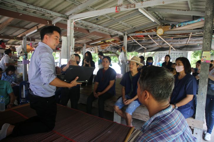 ดร.ปริเวท วรรณโกวิท หัวหน้าศูนย์วิศวกรรมสารสนเทศภูมิศาสตร์และนวัตกรรม (KGEO) และอาจารย์ประจำภาควิชาคณิตศาสตร์ คณะวิทยาศาสตร์ มจธ. เข้าให้ความรู้กลุ่มเกษตรกรชาวสวนมะม่วง ในพื้นที่เทศบาลเมืองมาบตาพุด เรื่องการบริหารจัดการน้ำใต้ดินเพื่อการทำเกษตรอย่างยั่งยืน