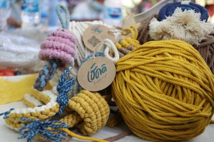 “เห็ดนำโชค” หนึ่งในผลิตภัณฑ์หัตถกรรมที่มีความหมายถึงความเจริญเติบโตภายใต้แบรนด์ “เฮ็ดดิ”จากฝีมือการถักทอของกลุ่มคนพิการชุมชนบ้านนางอย ต.เต่างอย อ.เต่างอย จ.สกลนคร ที่ผ่านการอบรมในหลักสูตรการออกแบบและพัฒนาผลิตภัณฑ์หัตถกรรมท้องถิ่น ภายใต้โครงการพัฒนาศักยภาพคนพิการของมหาวิทยาลัยเทคโนโลยีพระจอมเกล้าธนบุรี (มจธ.) ซึ่งนอกจากเห็ดแล้วยังมีไม้เท้า สายรุ้ง กระถางต้นไม้ ปลอกสวมด้ามไม้กวาด กระเป๋าและเสื้อมัดย้อมสีธรรมชาติ ล้วนมาจากฝีมือของคนพิการที่ได้รับการบ่มเพาะทั้งในภาคทฤษฎีและภาคปฏิบัติภายใต้หลักสูตรมาเป็นระยะเวลากว่า 6 เดือนตั้งแต่เดือนกรกฎาคม ถึงธันวาคม 2564 โดยได้รับการสนับสนุนงบประมาณจากการไฟฟ้าฝ่ายผลิตแห่งประเทศไทย (กฟผ.) ตามพระราชบัญญัติส่งเสริมและพัฒนาคุณภาพชีวิตคนพิการมาตรา 35 โดยคนพิการจะไม่เสียค่าใช้จ่ายใดๆ นอกจากนี้ยังจะได้รับเบี้ยเลี้ยง อาหารกลางวัน และค่าเดินทางตลอดระยะเวลาในการฝึกอบรม           อาจารย์สุเมธ ท่านเจริญ ประธานโครงการส่งเสริมและพัฒนาศักยภาพคนพิการ มจธ. กล่าวว่า หลักสูตรการออกแบบและพัฒนาผลิตภัณฑ์หัตถกรรมท้องถิ่น เป็นหนึ่งในสามหลักสูตรที่จัดขึ้นอยู่ภายใต้โครงการฝึกอบรมฝึกงานคนพิการฯ รุ่นที่ 8 เพื่อเพิ่มศักยภาพคนพิการ สำหรับคนพิการที่ต้องการทำงานอาชีพอิสระ และเป็นหลักสูตรนำร่องที่จัดอบรมในพื้นที่ต่างจังหวัดเป็นปีแรก จากเดิมที่จัดอยู่ภายในมหาวิทยาลัย และเนื่องจากสถานการณ์การแพร่ระบาดของโรคโควิด-19 เป็นอุปสรรคที่ทำให้ไม่สามารถลงพื้นที่ได้ จึงเป็นความท้าทายในการทำงาน แต่การดำเนินโครงการก็สามารถผ่านไปได้ด้วยดี           “หลักสูตรนี้มีความน่าสนใจตรงที่เป็นการทำงานร่วมกับชุมชนผ่านเครือข่ายในพื้นที่ ทั้งจากโรงพยาบาลเต่างอย และอสม.เต่างอย ช่วยพิจารณาคัดเลือกคนพิการในชุมชนเข้าร่วมอบรม และเนื่องจากสถานการณ์การแพร่ระบาดของโรคโควิด-19 ทำให้ไม่สามารถลงพื้นที่ได้ แต่ได้รับความร่วมมือจากนักออกแบบผู้ที่มีความรู้และมีความสามารถด้านการออกแบบและหัตถกรรมในพื้นที่เข้าไปช่วยสอนคนพิการถึงในชุมชนตามหลักสูตรคณะสถาปัตยกรรมศาสตร์และการออกแบบ มจธ. เป็นผู้ออกแบบ ทำให้การทำงานผ่านไปได้ด้วยดี”           ผศ.วรนุช…