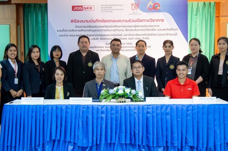 พิธีลงนามบันทึกข้อตกลงความร่วมมือทางวิชาการด้านการเตรียมความพร้อมนักศึกษาก่อนออกสู่สถานประกอบการ รวมทั้งการจัดการศึกษาเชิงบูรณาการกับการทำงาน ฝึกประสบการณ์วิชาชีพ และสหกิจศึกษา ระหว่าง คณะครุศาสตร์อุตสาหกรรมและเทคโนโลยี มหาวิทยาลัยเทคโนโลยีพระจอมเกล้าธนบุรี กับ บริษัท จัดหางาน จ๊อบบีเคเค ดอท คอม จำกัด February 5, 2020 Download [1.32 MB]