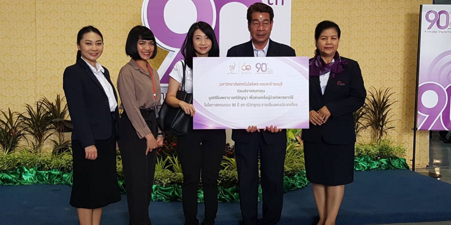 มหาวิทยาลัยเทคโนโลยีพระจอมเกล้าธนบุรี (มจธ.) ร่วมแสดงความยินดีเนื่องในโอกาสครบ 90 ปี สถานีวิทยุกระจายเสียงแห่งประเทศไทย ในวันอังคารที่ 25 กุมภาพันธ์ 2563 ณ สถานีวิทยุกระจายเสียงแห่งประเทศไทย ถนนวิภาวดีรังสิต กรุงเทพฯ โดยได้ร่วมบริจาคเงินสมทบทุนช่วยเหลือผู้ป่วยจิตเวชยากไร้ มูลนิธิโรงพยาบาลศรีธัญญา ตามวัตถุประสงค์ของสถานีวิทยุกระจายเสียงแห่งประเทศไทย