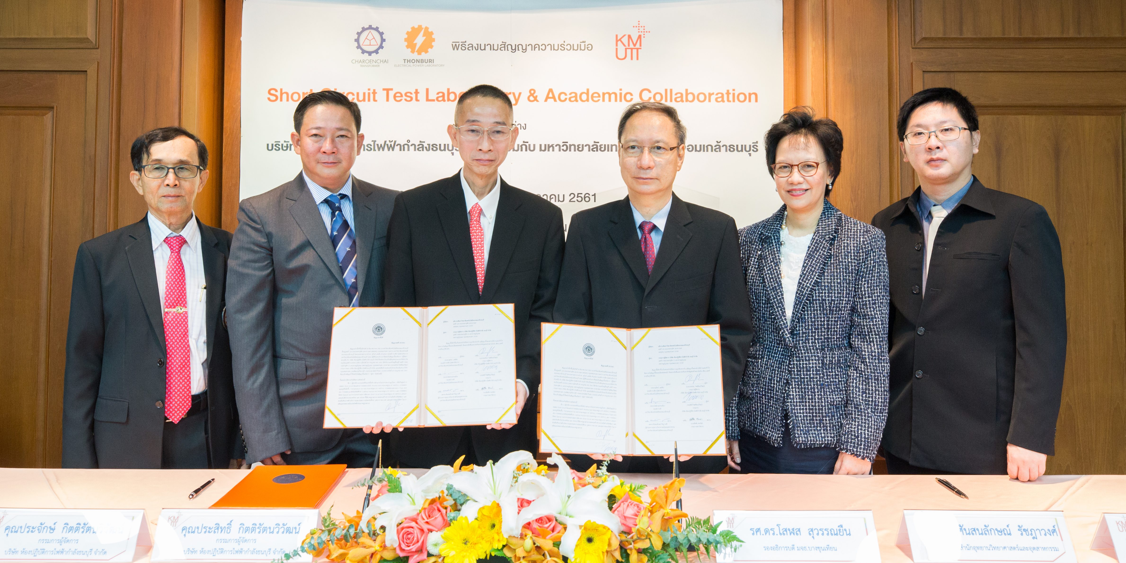 วันที่ 20 ธันวาคม พ.ศ. 2561 ได้มีการลงนามสัญญาความร่วมมือเพื่อจัดตั้งศูนย์ทดสอบหม้อแปลงไฟฟ้าอย่างครบวงจร รวมถึงการทดสอบ Short circuit โครงการ Short Circuit Test Laboratory & Academic Collaboration ระหว่างมหาวิทยาลัยเทคโนโลยีพระจอมเกล้าธนบุรี (มจธ.) กับ บริษัท ห้องปฏิบัติการไฟฟ้ากำลังธนบุรี จำกัด โดยเป็นความร่วมมือระหว่างภาควิชาวิศวกรรมไฟฟ้า คณะวิศวกรรมศาสตร์ มจธ. กับ บริษัท ห้องปฏิบัติการไฟฟ้ากำลัง ธนบุรี จำกัด (ในเครือเจริญชัยกรุ๊ป) ภายใต้การดูแลของสำนักอุทยานวิทยาศาสตร์และอุตสาหกรรม มจธ. เพื่อจัดตั้งศูนย์ทดสอบหม้อแปลงไฟฟ้าอย่างครบวงจร รวมถึงการทดสอบ Short circuit ที่ได้มาตรฐานระดับสากล IEC 60076-5 และเป็นที่ยอมรับในระดับนานาชาติ ภายใต้คำแนะนำของผู้เชี่ยวชาญจากภาควิชาวิศวกรรมไฟฟ้า คณะวิศวกรรมศาสตร์ มจธ. และสร้างความร่วมมือด้านการวิจัย พัฒนาและเสริมสร้างศักยภาพของบุคลากรและนักศึกษาของ มจธ. และบุคลากรของบริษัท ห้องปฏิบัติการไฟฟ้ากำลังธนบุรี จำกัด เพื่อให้เกิดความรู้ความเข้าใจและมีประสบการณ์ในการทดสอบหม้อแปลงไฟฟ้าอย่างครบวงจร