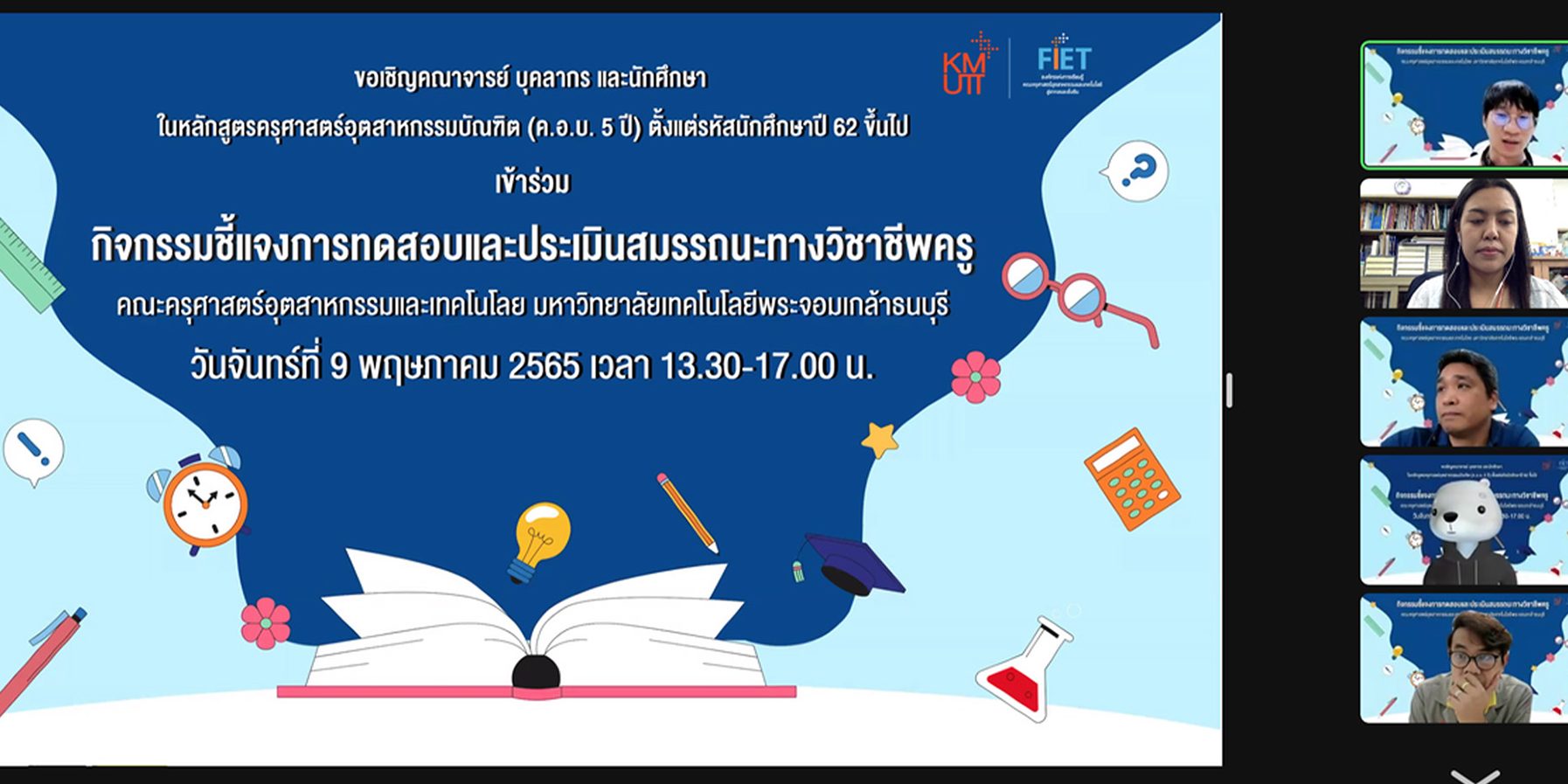 The Policy-Driven Committees on Courses Development and Instruction in Industrial Education of the Faculty of Industrial Education and Technology, KMUTT, held the “Teachers’ Professional Competency Testing and Evaluation Professional Knowledge and Experience under the Professional Standards” activities for FIET students