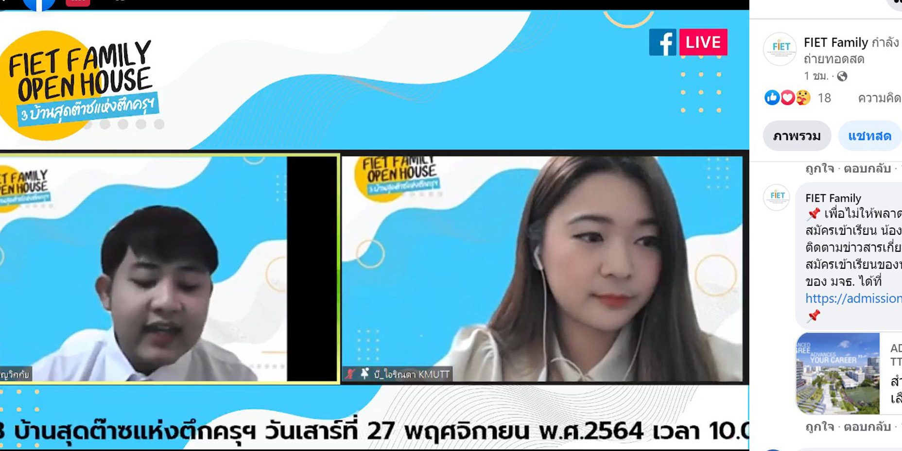 The policy-driven committees on courses development and the instruction in science and technology of the Faculty of Industrial Education and Technology, KMUTT held the 3rd online Open House activity “FIET FAMILY OPEN HOUSE 3”