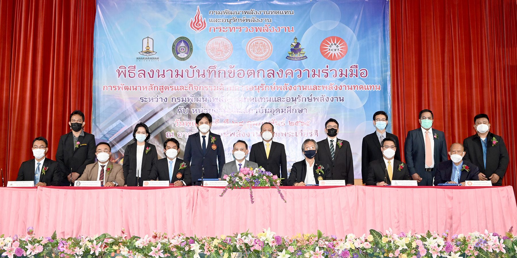 คณะครุศาสตร์อุตสาหกรรมฯ มจธ. ร่วมพิธีลงนามบันทึกข้อตกลงความร่วมมือการพัฒนาหลักสูตรและกิจกรรมด้านการอนุรักษ์พลังงาน และพลังงานทดแทน ระหว่าง กรมพัฒนาพลังงานทดแทนและอนุรักษ์พลังงาน กับ หน่วยงานและสถาบันอุดมศึกษา จำนวน 6 แห่ง
