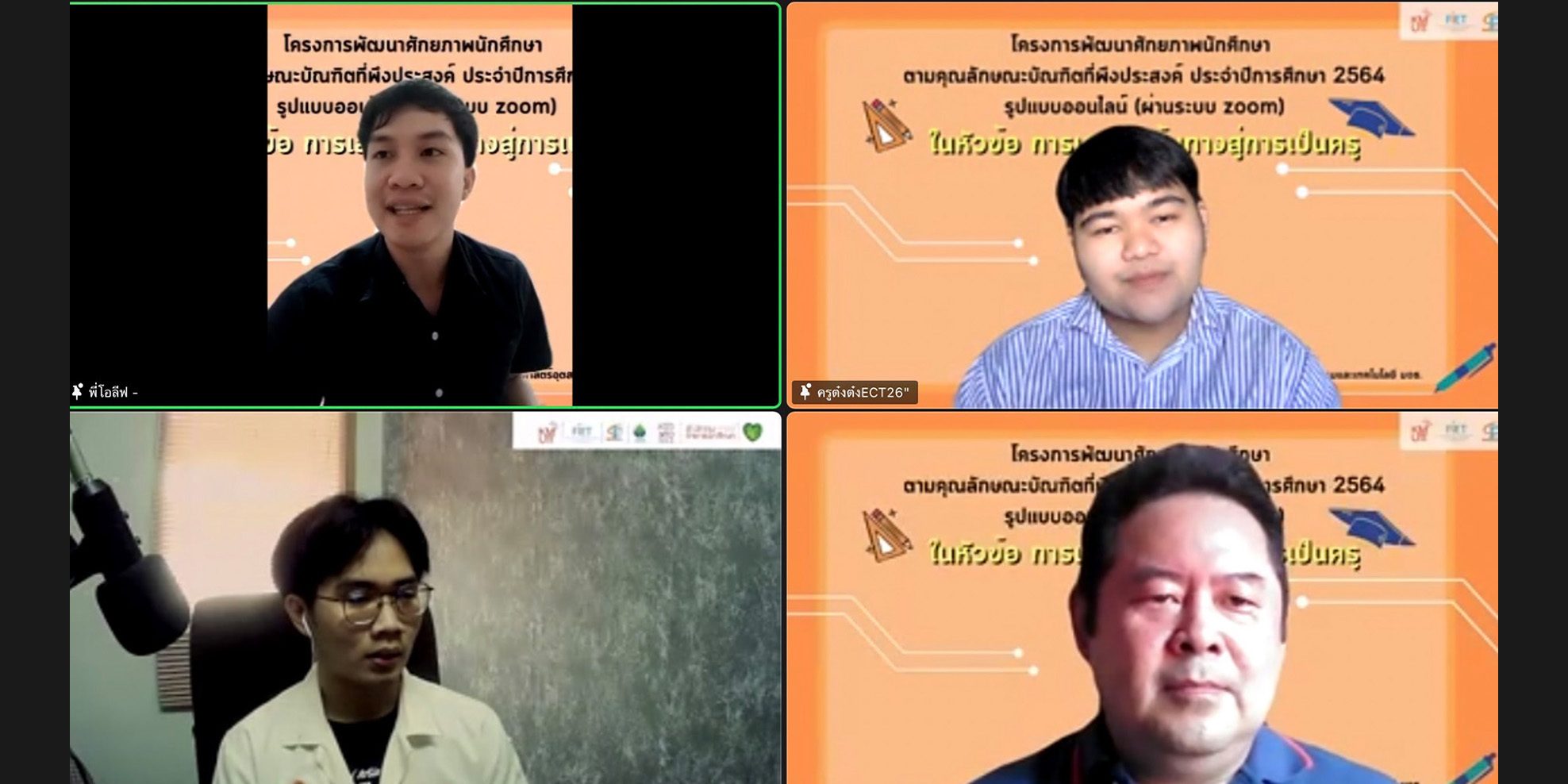 สโมสรนักศึกษา คณะครุศาสตร์อุตสาหกรรมและเทคโนโลยี มจธ. โครงการพัฒนาศักยภาพนักศึกษาตามคุณลักษณะบัณฑิตที่พึงประสงค์ ประจำปีการศึกษา 2564 รูปแบบออนไลน์ (กิจกรรมที่ 4) หัวข้อ “เส้นทางสู่การเป็นครู”